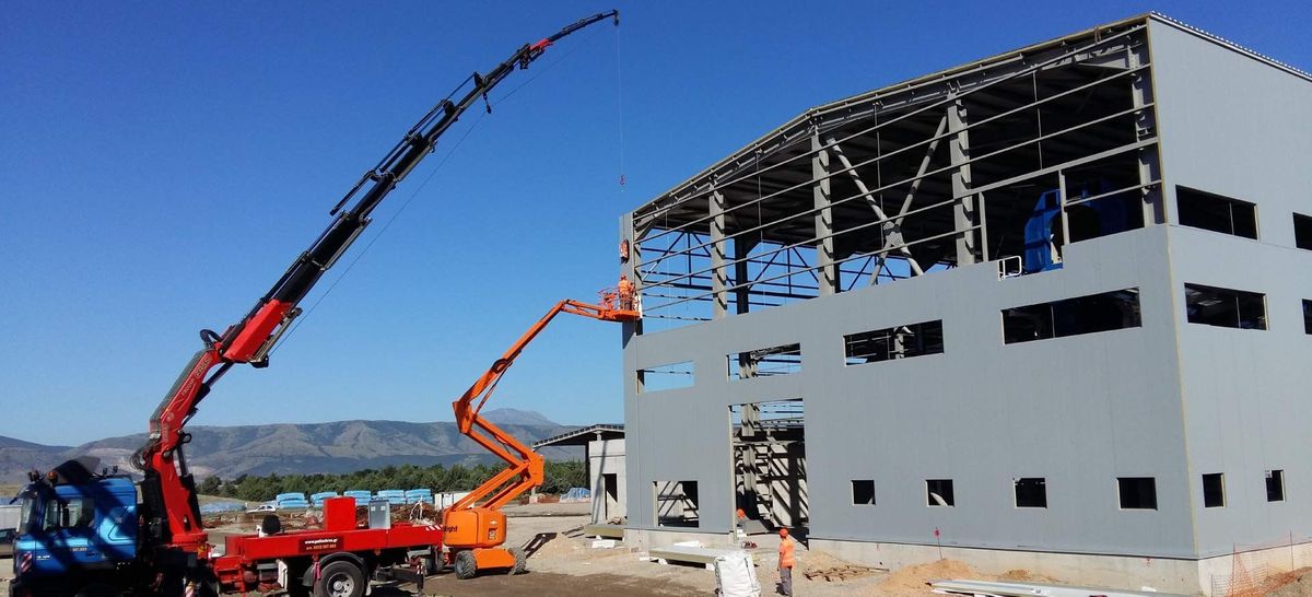 Η ΑΦΟΙ ΠΑΛΛΑ ΟΕ εξειδικεύεται στις ανεγέρσεις μεταλλικών κατασκευών και κτιρίων, στις επικαλύψεις στεγών και στις επενδύσεις πλευρικών επιφανειών. Διαθέτει ιδιόκτητες εγκαταστάσεις και αναλαμβάνει μεταλλικές κατασκευές κάθε είδους και την παραγωγή ειδικών τεμαχίων λαμαρίνας με στράντζα/ψαλίδι. Προσφέρει, επίσης, υπηρεσία ενοικίασης γερανών και ανυψωτικών μηχανημάτων, αναλαμβάνοντας πάσης φύσεως εργασία σε ύψος.